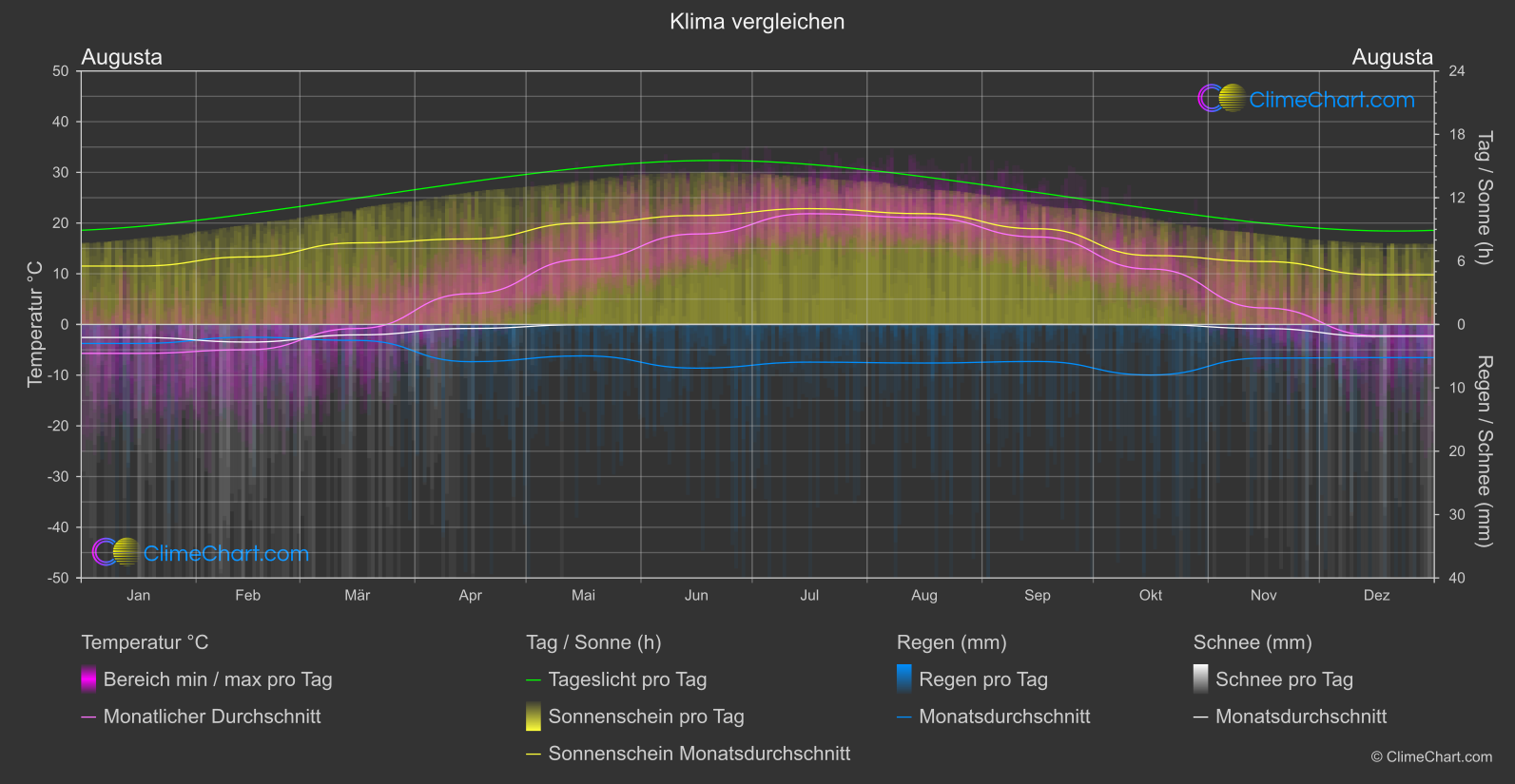 Klimavergleich von Augusta, USA mit Peking, China