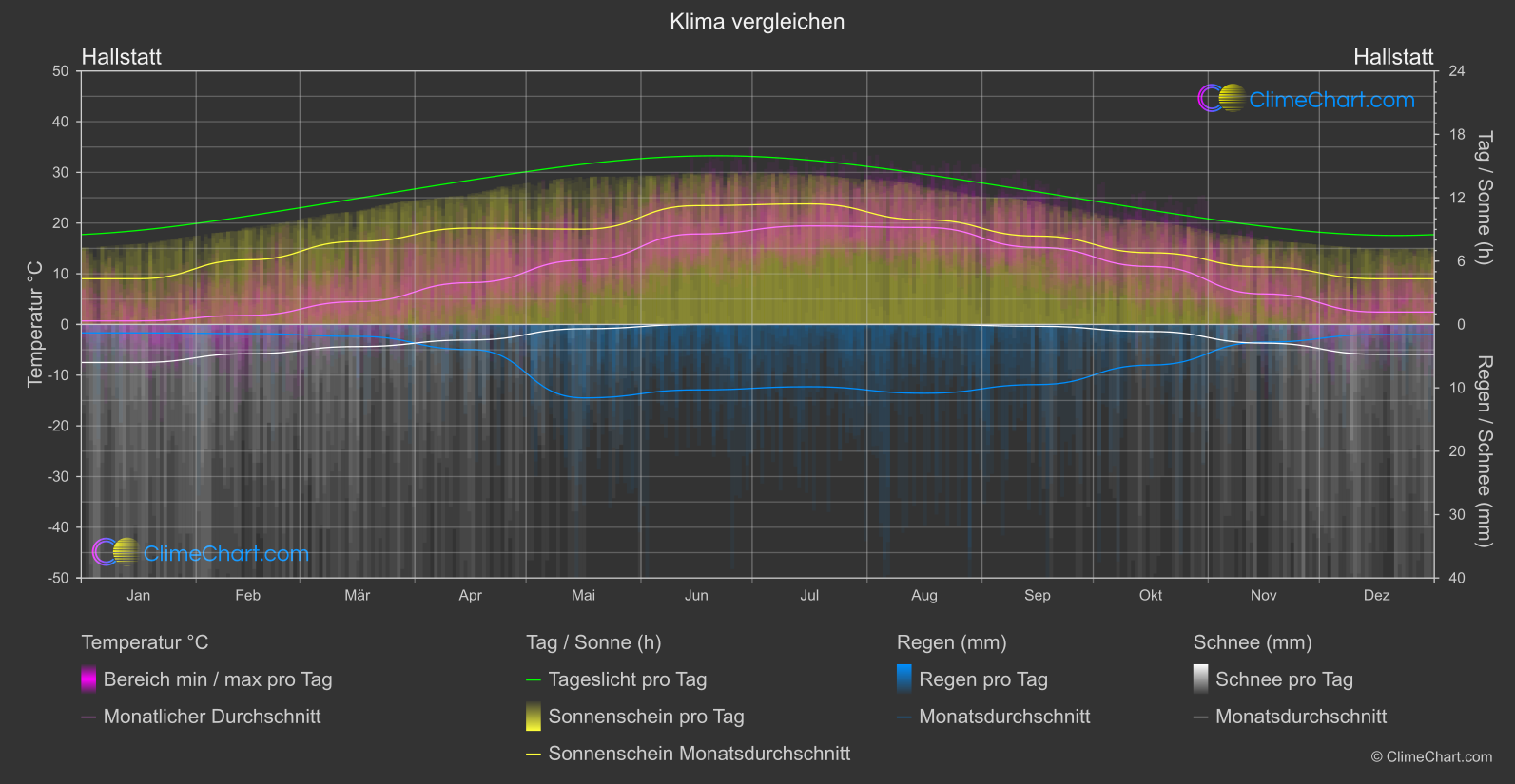 Klimavergleich Datenübersicht für Hallstatt, Österreich mit Istanbul, Türkei