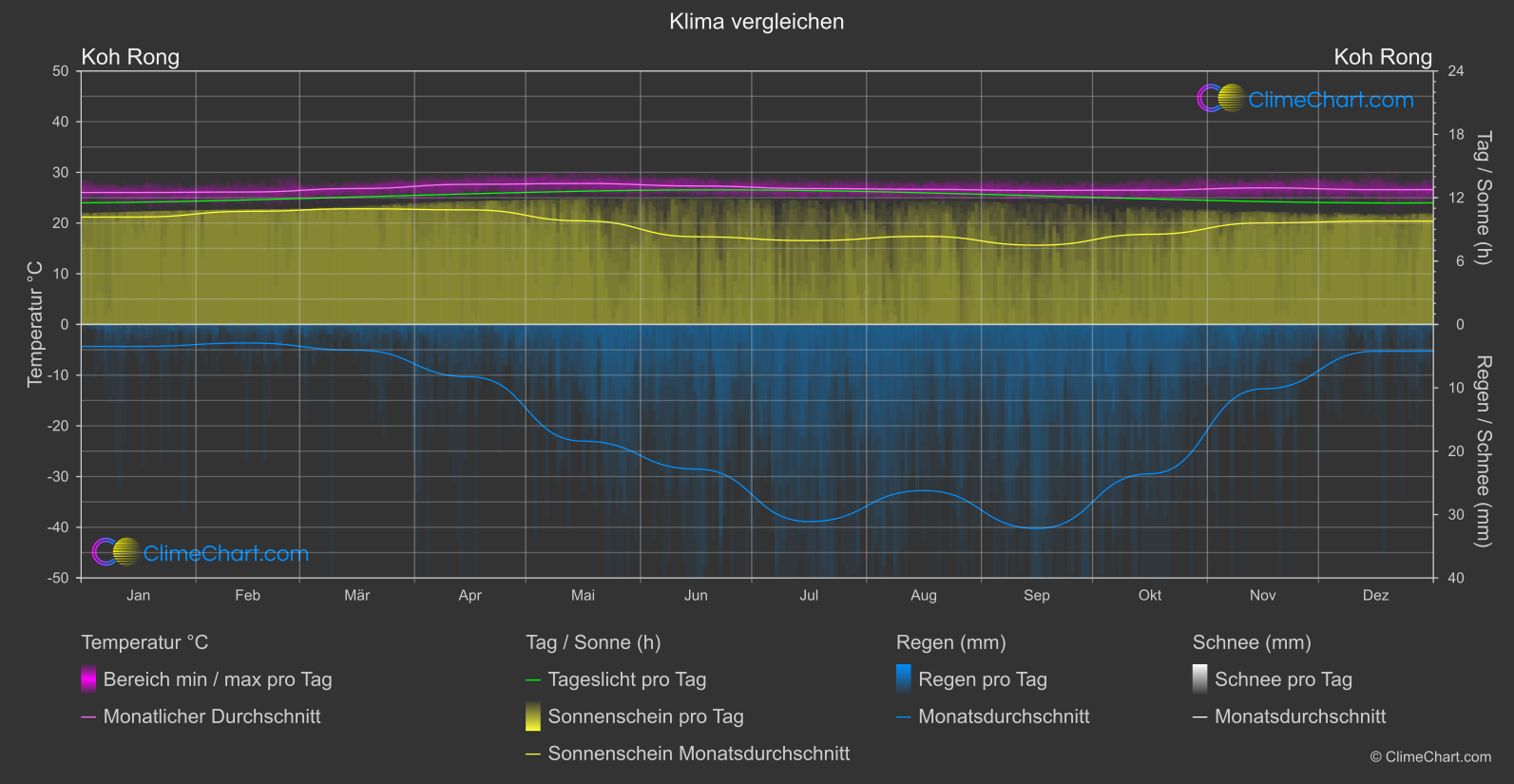 Klimavergleich Datenübersicht für Koh Rong, Kambodscha mit Shenzhen, China