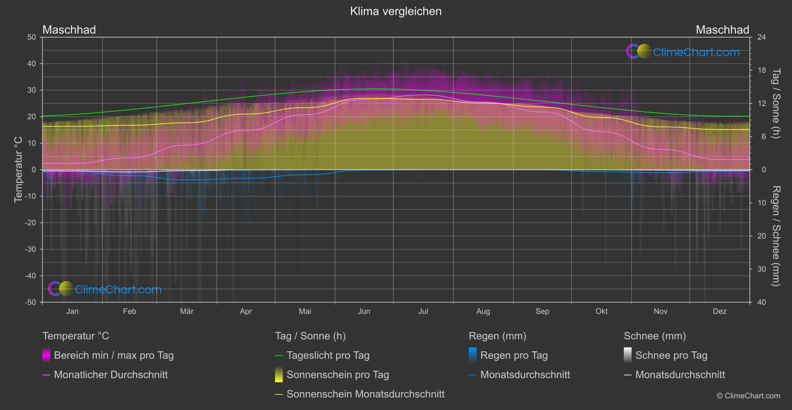 Klimavergleich von Maschhad, Iran mit Paris, Frankreich