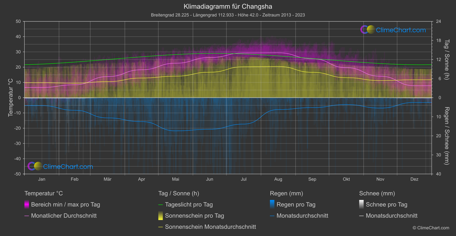 Umfassendes Klimadiagramm von Changsha, China: Monatliche Durchschnitte und Wettertrends