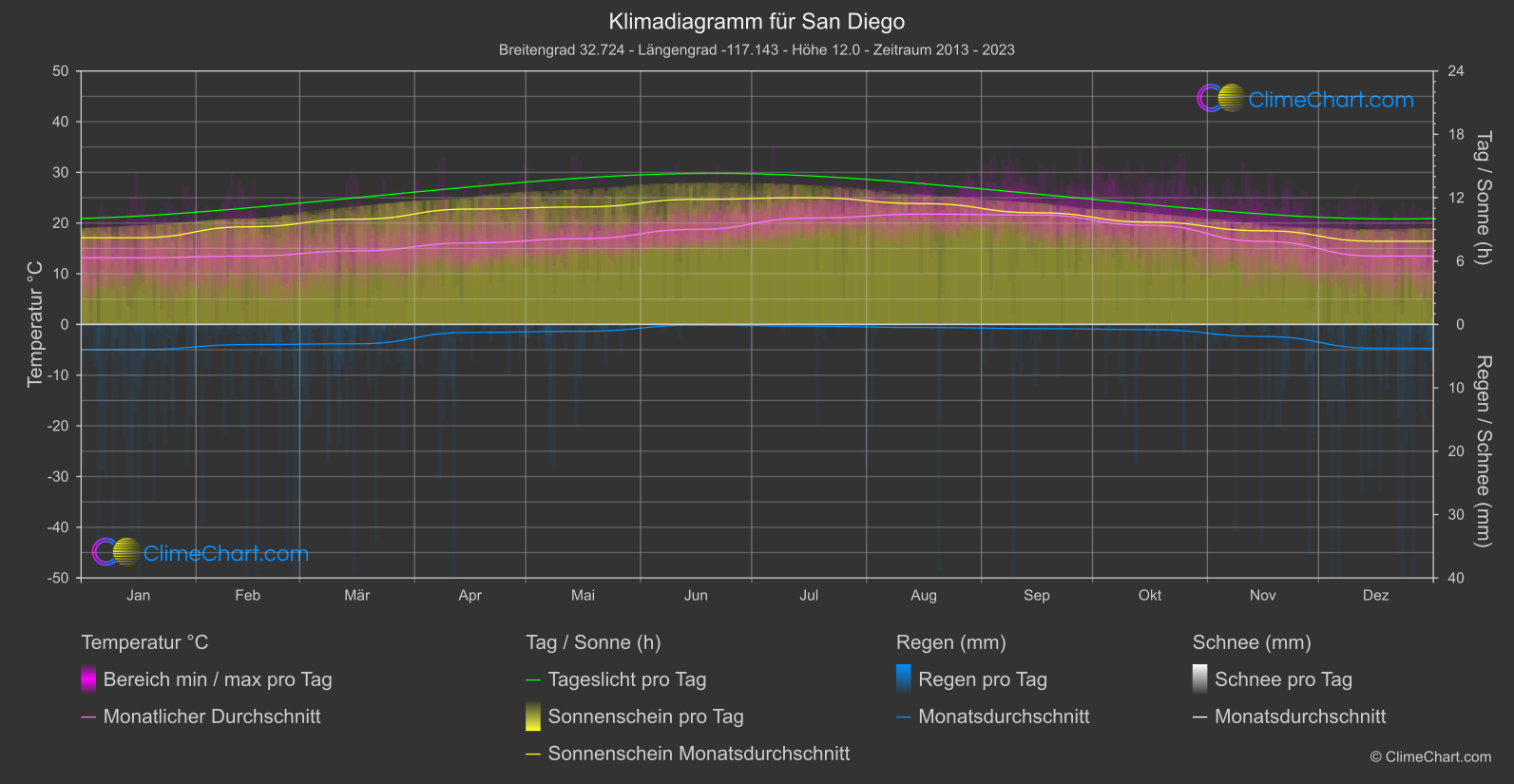 Klimadiagramm von San Diego, USA