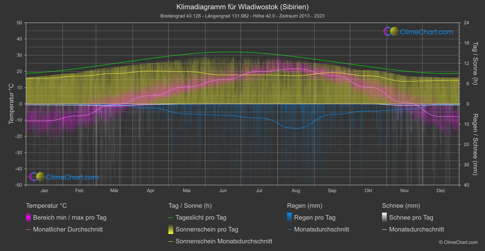 Klimadatenübersicht für Wladiwostok (Sibirien), Russische Föderation