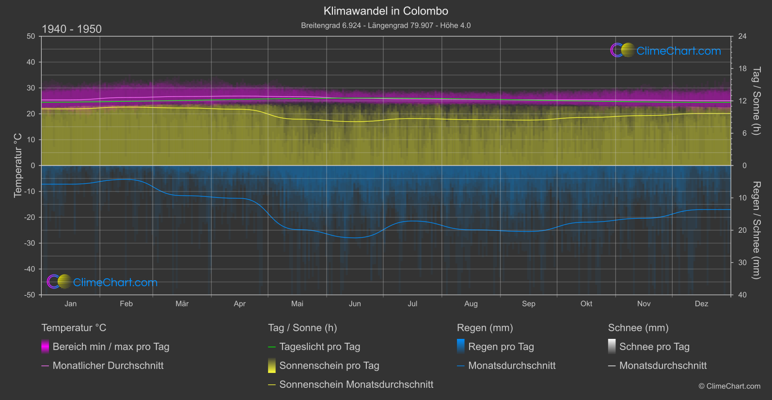 Klimawandel-Datenübersicht für Colombo, Sri Lanka