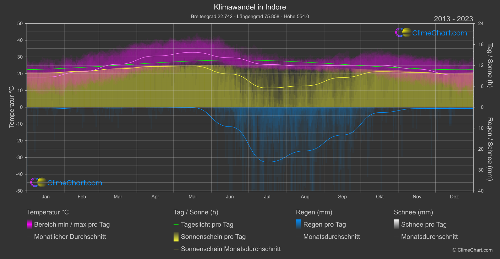 Klimawandel-Diagramm von Indore, Indien
