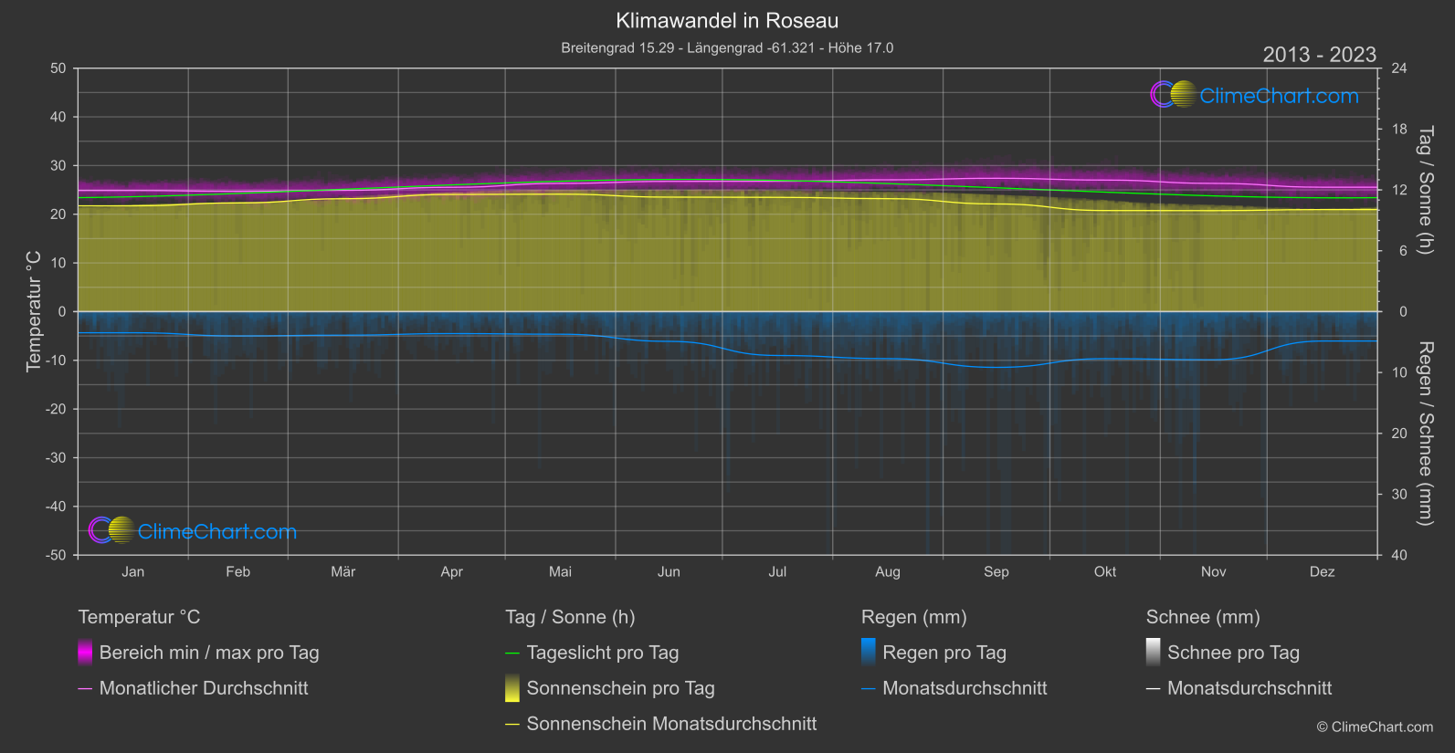 Klimawandel-Datenübersicht für Roseau, Dominica