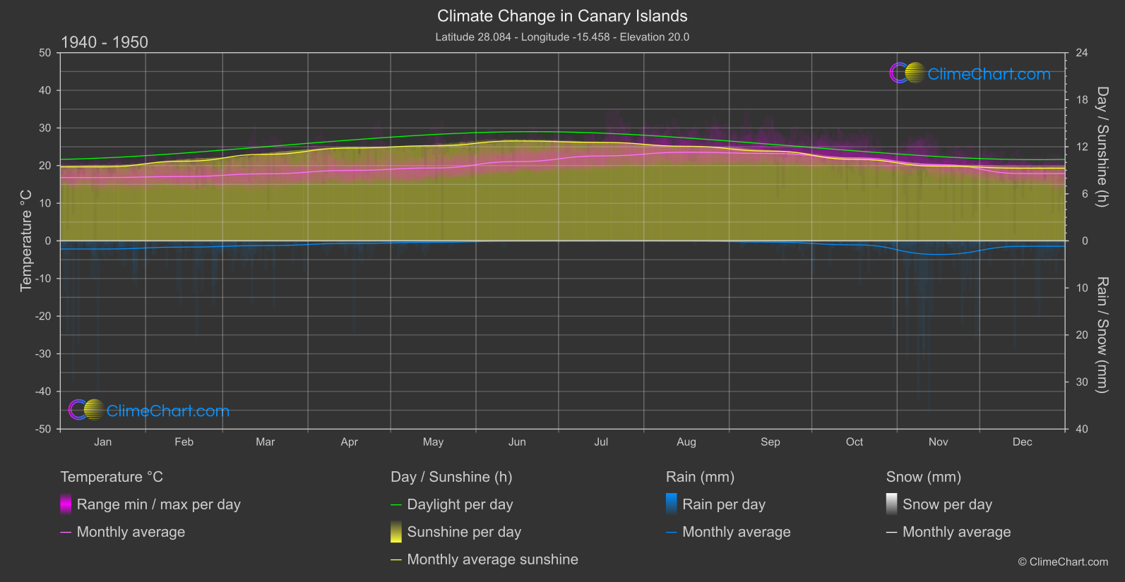 Comprehensive Climate Change Chart of Canary Islands, Spain: Monthly Averages and Impact Trends