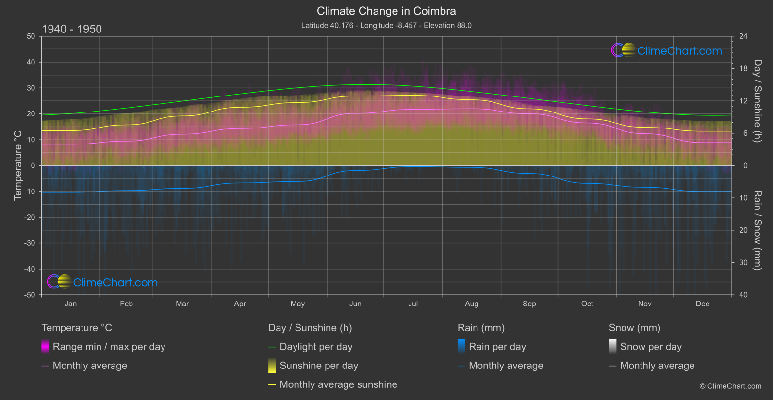 Comprehensive Climate Change Chart of Coimbra, Portugal: Monthly Averages and Impact Trends
