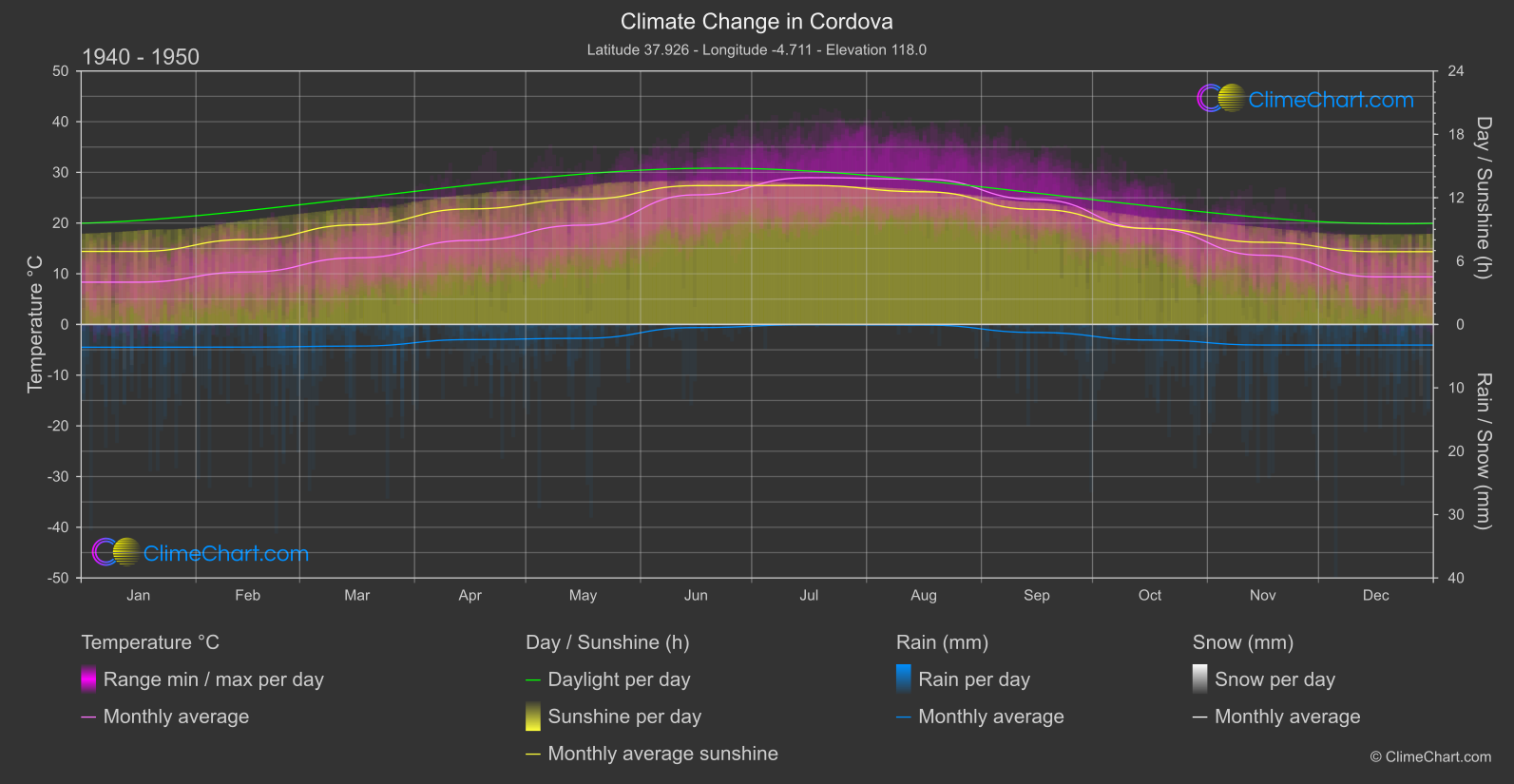 Climate Change Chart of Cordova, Spain