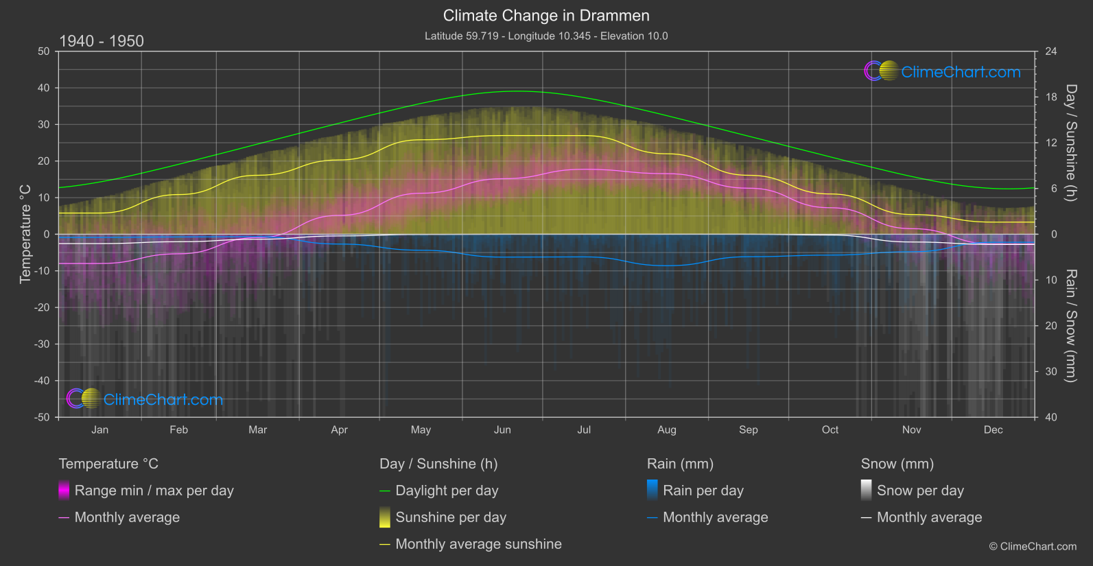 Comprehensive Climate Change Chart of Drammen, Norway: Monthly Averages and Impact Trends