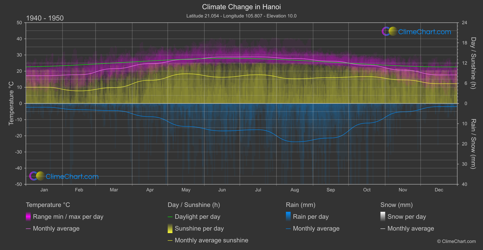 Comprehensive Climate Change Chart of Hanoi, Viet Nam: Monthly Averages and Impact Trends