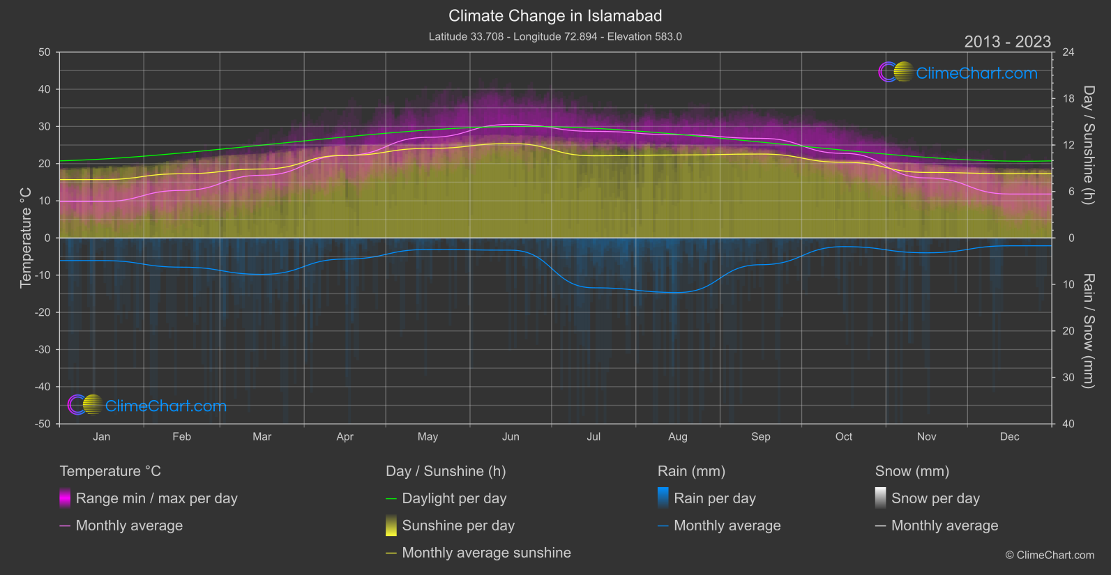 Comprehensive Climate Change Chart of Islamabad, Pakistan: Monthly Averages and Impact Trends