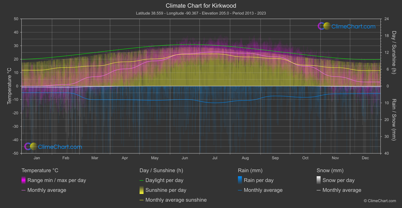 Comprehensive Climate Chart of Kirkwood, USA: Monthly Averages and Weather Trends