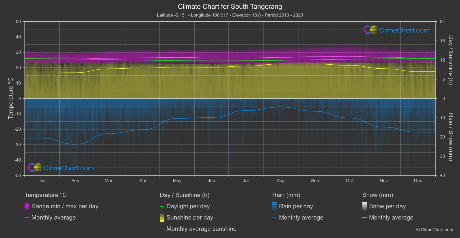 Comprehensive Climate Chart of South Tangerang, Indonesia: Monthly Averages and Weather Trends