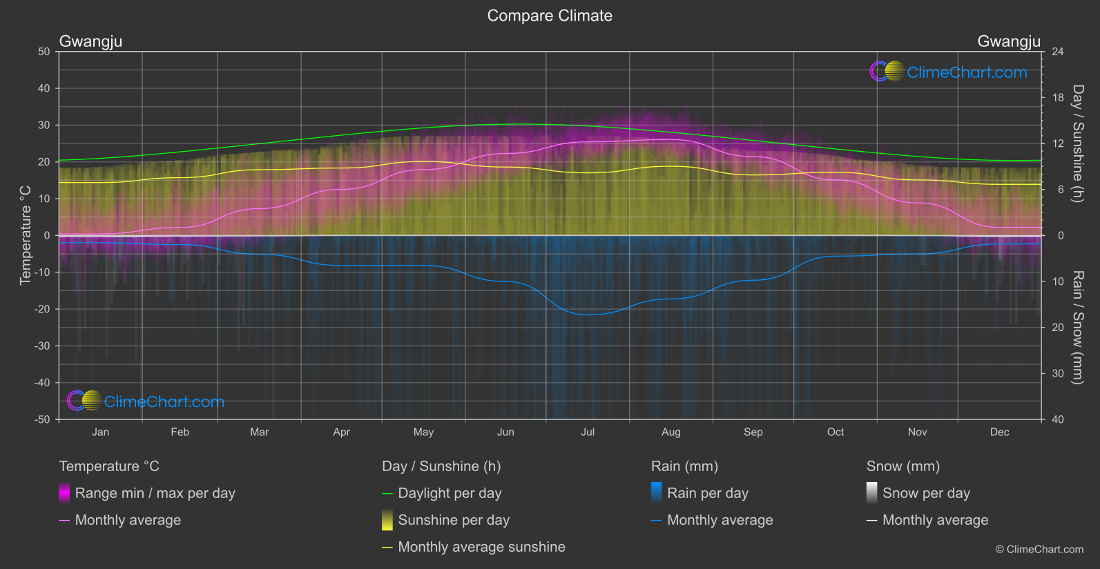 Climate Comparison Chart of Gwangju, South Korea vs Shanghai, China