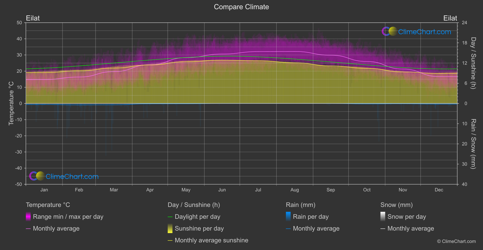 Climate Comparison Chart of Tromsø, Norway vs Eilat, Israel