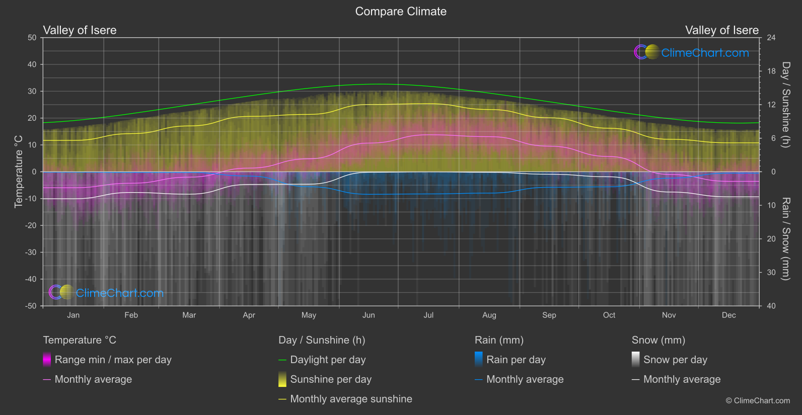 Climate Comparison Chart of Valley of Isere, France vs Shenzhen, China