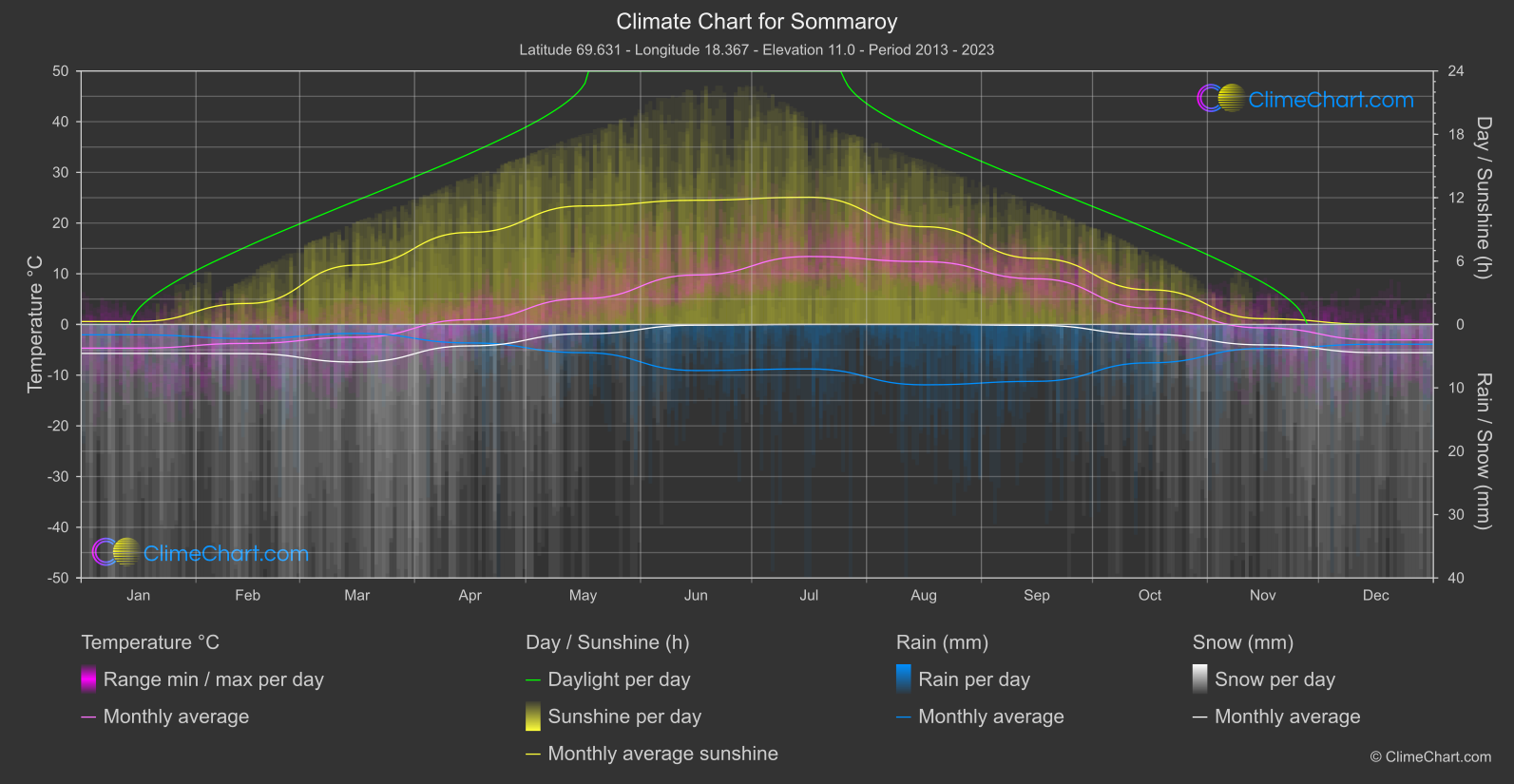 Sommaroy, located in Norway, experiences a subarctic climate with cool summers and cold winters.
