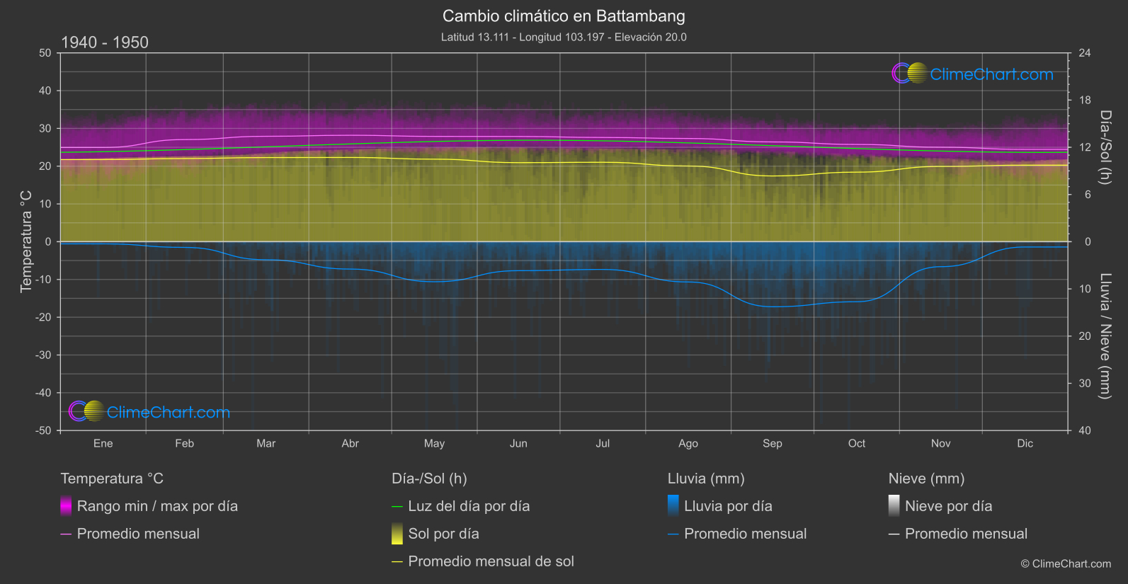 Resumen de Datos del Cambio Climático para Battambang, Camboya