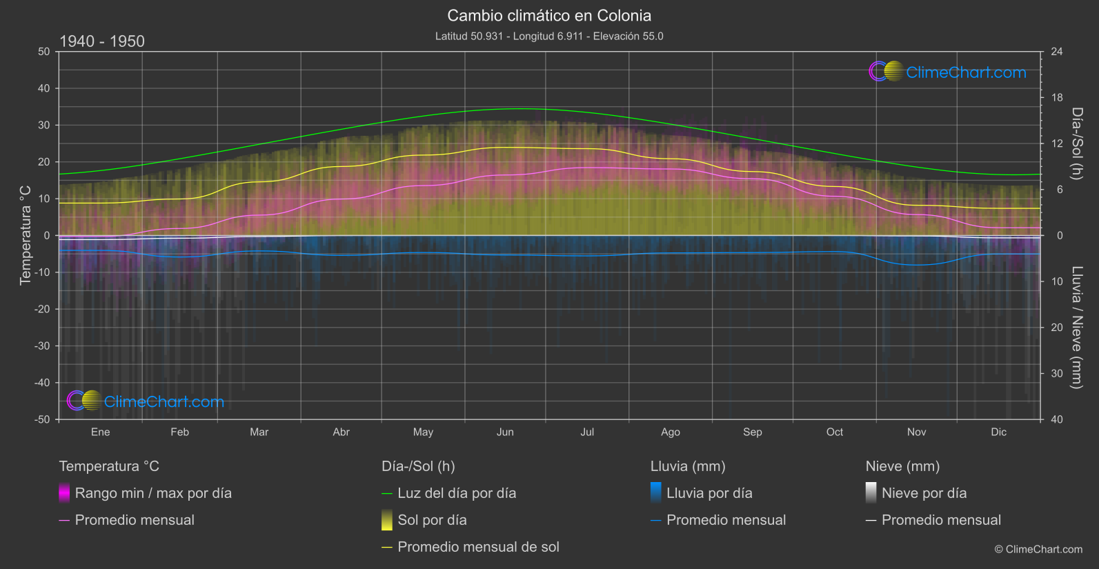 Gráfico de Cambio Climático de Colonia, Alemania