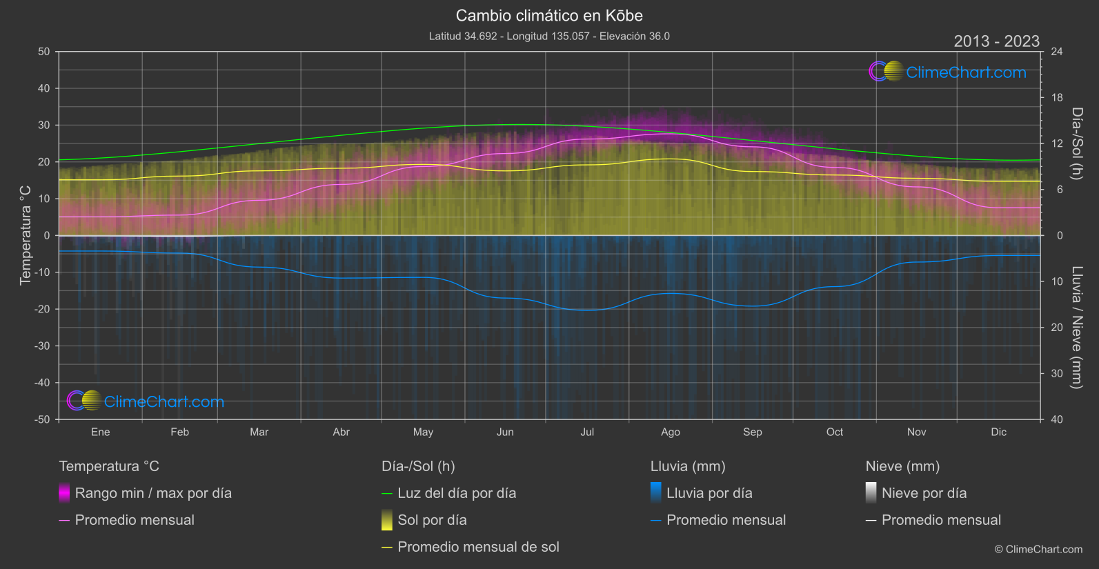 Gráfico de Cambio Climático de Kōbe, Japón