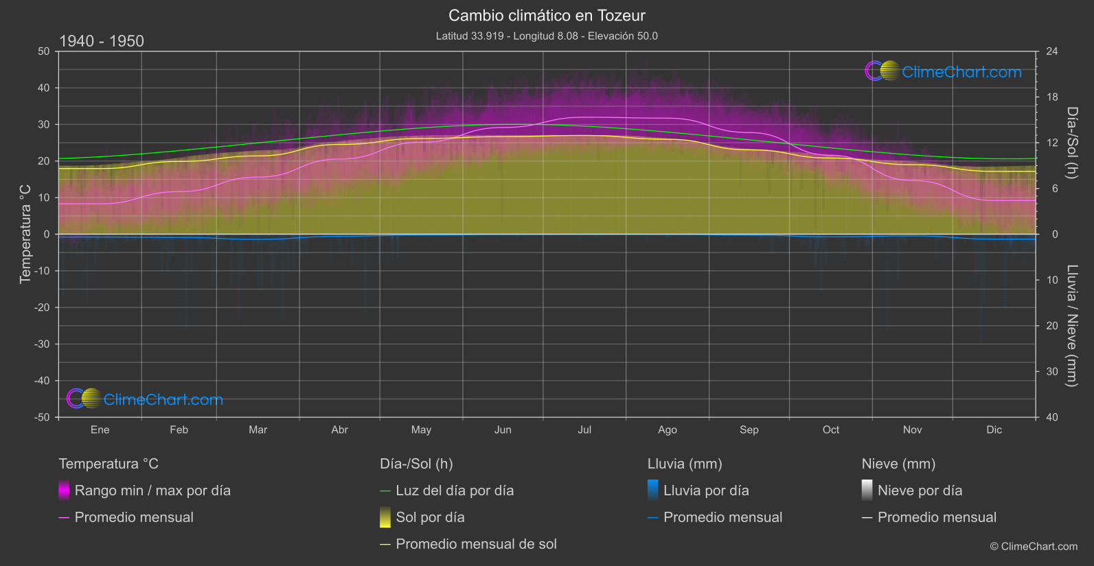 Gráfico de Cambio Climático de Tozeur, Túnez