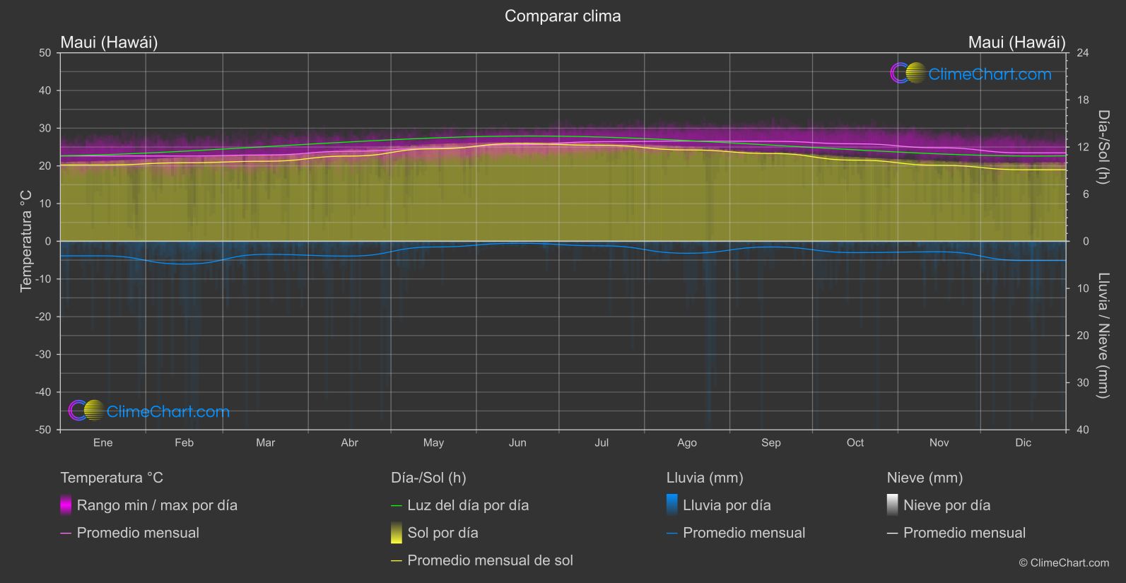 Resumen de Datos de Comparación Climática para Maui (Hawái), Estados Unidos de América vs Marrakech, Marruecos