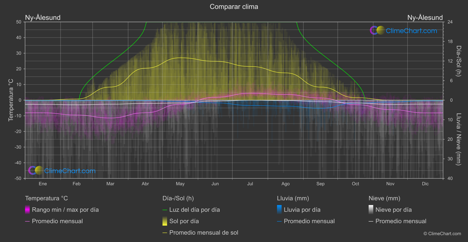 Gráfico de Comparación Climática de Ny-Ålesund, Noruega vs Ciudad de México, México