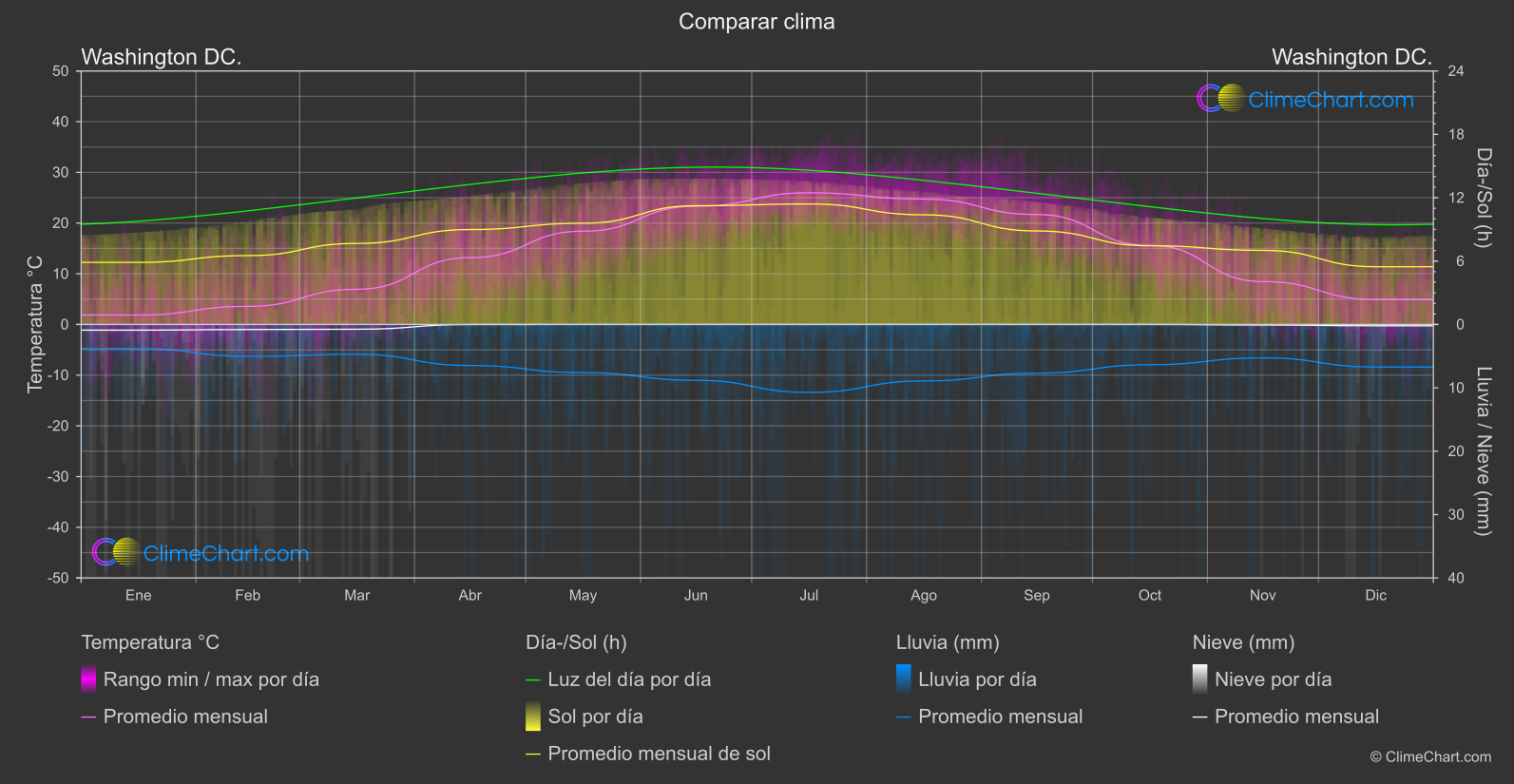 Resumen de Datos de Comparación Climática para Washington DC., Estados Unidos de América vs Shénzhen, Porcelana