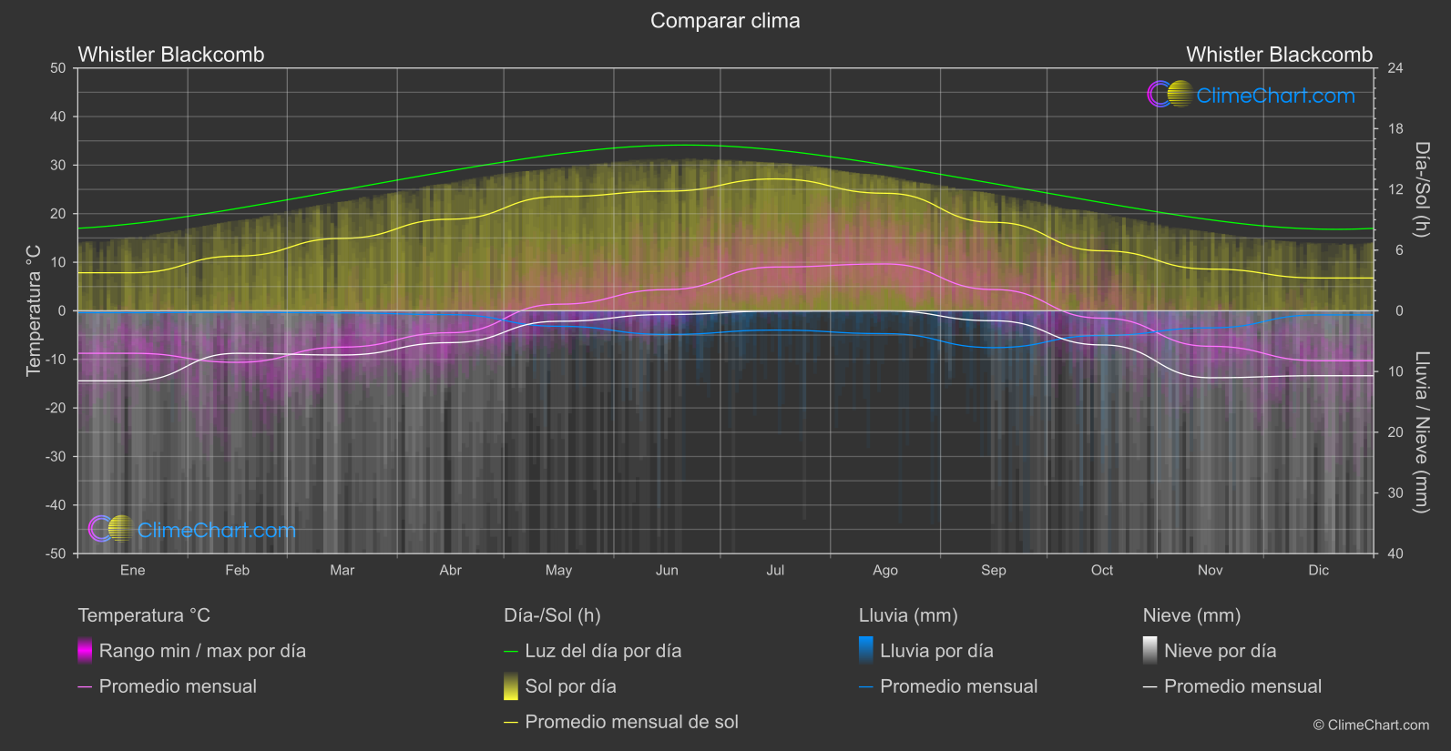 Resumen de Datos de Comparación Climática para Whistler Blackcomb, Canadá vs Marrakech, Marruecos