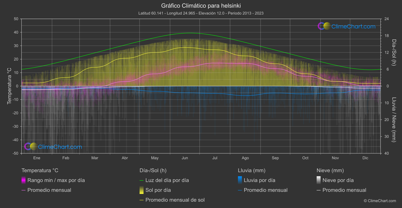 Resumen de Datos Climáticos para helsinki, Finlandia