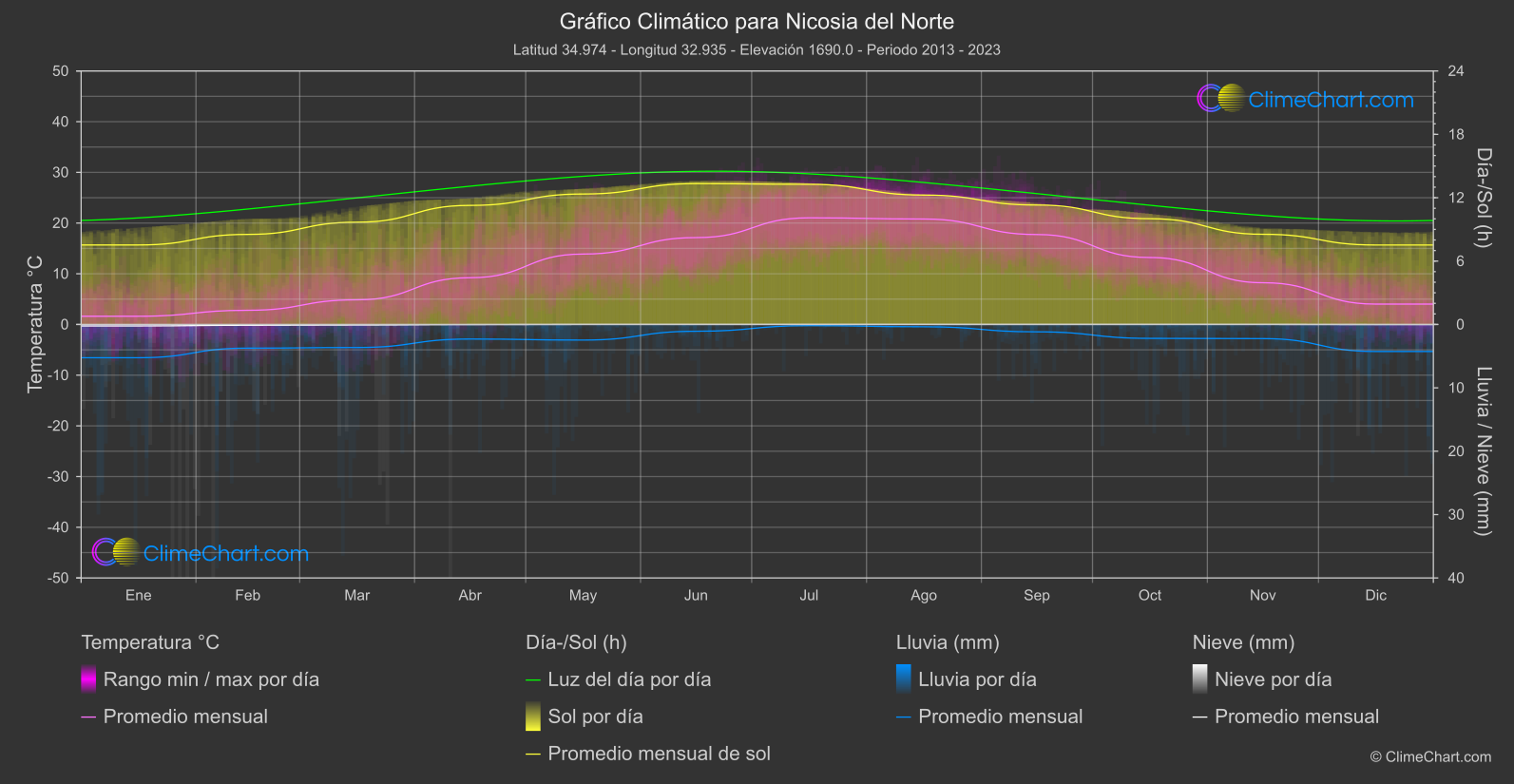 Resumen de Datos Climáticos para Nicosia del Norte, Chipre