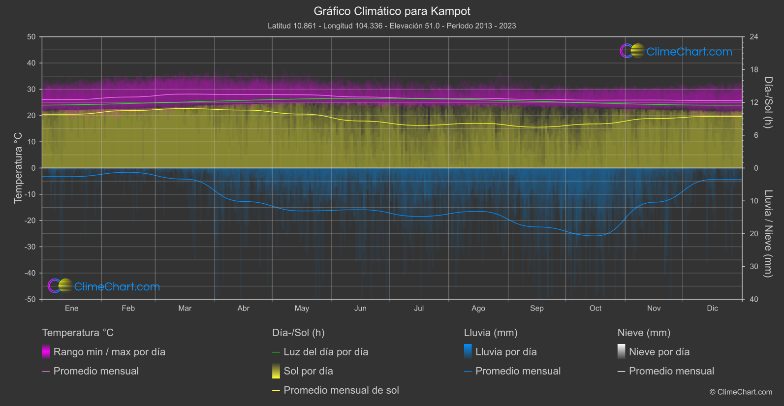 Kampot, ubicado en el sur de Camboya, tiene un clima tropical monzónico.
