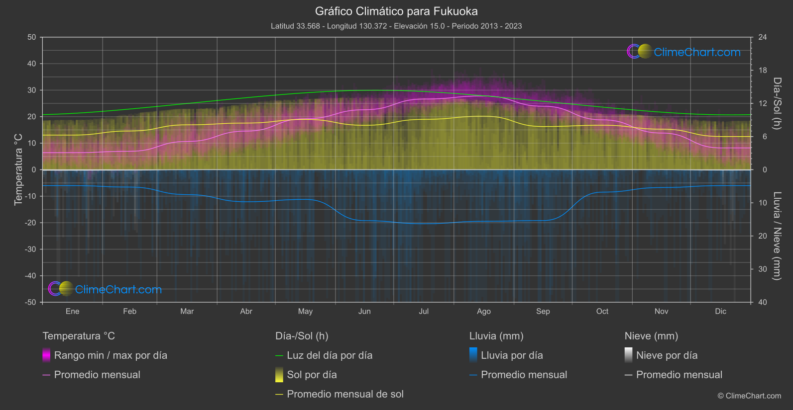 Fukuoka, ubicada en la isla de Kyushu en Japón, experimenta un clima subtropical húmedo.