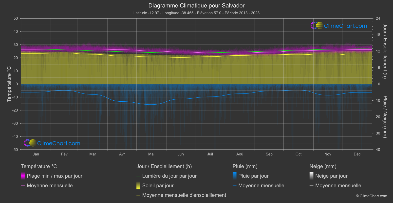 Salvador, Brésil, bénéficie d'un climat tropical avec des températures chaudes toute l'année.