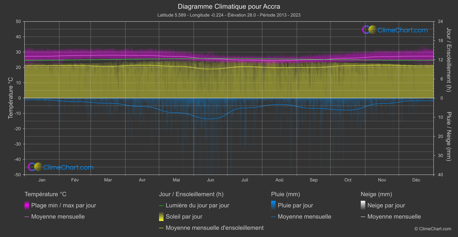 Accra connaît un climat de savane tropical avec deux saisons principales – la saison des pluies et la saison sèche.