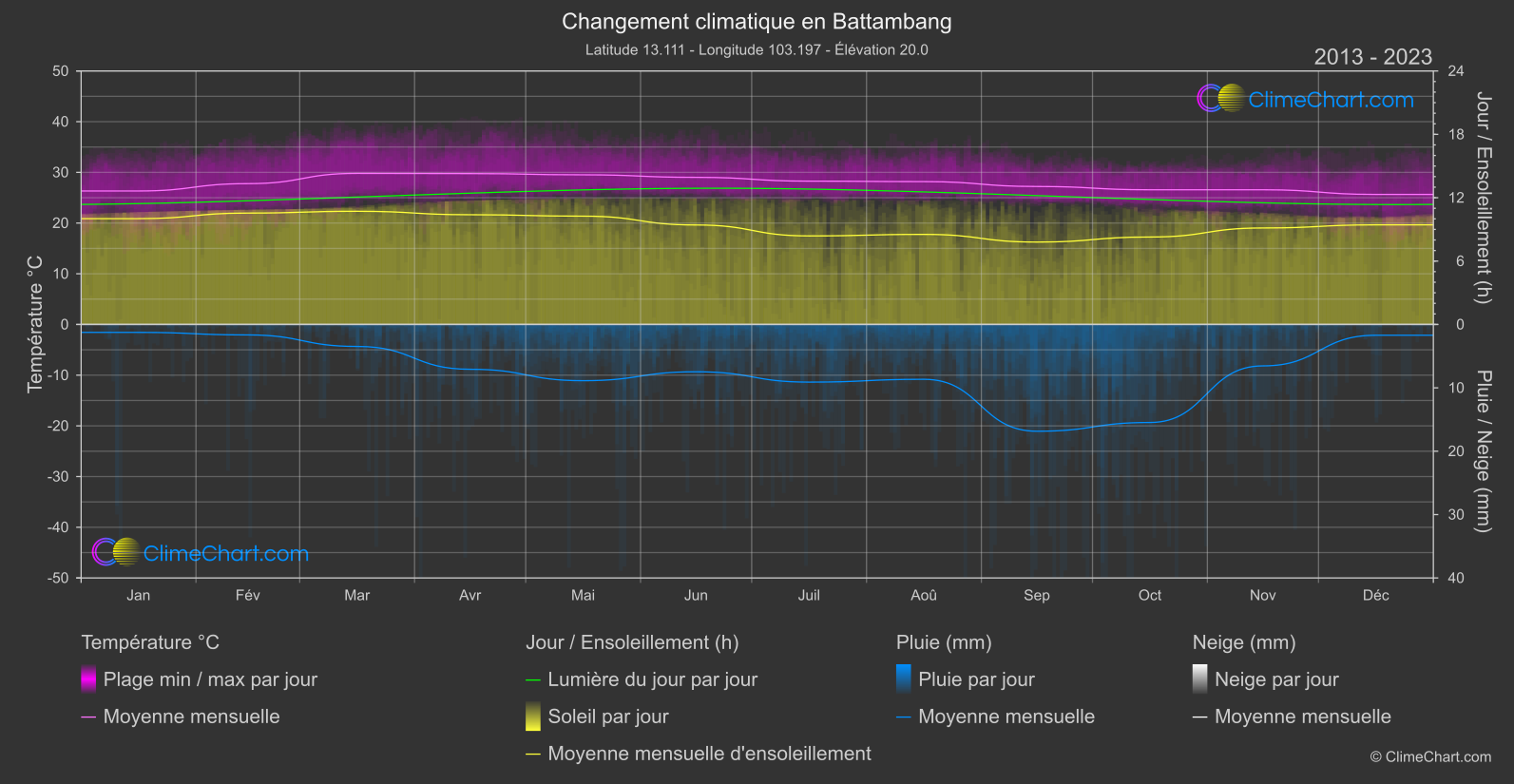 Diagramme de Changement Climatique de Battambang, Cambodge
