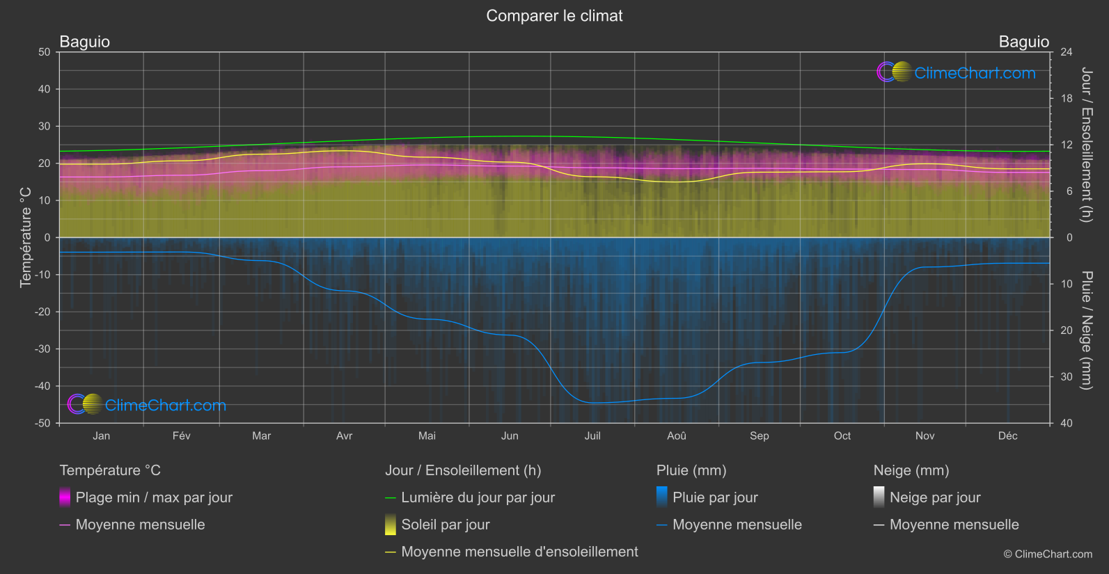 Diagramme de Comparaison Climatique de Baguio, Philippines vs Londres, Grande-Bretagne