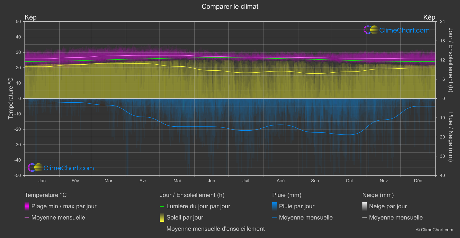 Explorez les données complètes de comparaison climatique pour Kép, Cambodge et Macao, Macao. Ce tableau détaillé fournit des informations précieuses sur les variations de température, les niveaux de précipitations et les changements saisonniers influencés par les facteurs climatiques, vous aidant à comprendre les conditions météorologiques uniques de ces régions.