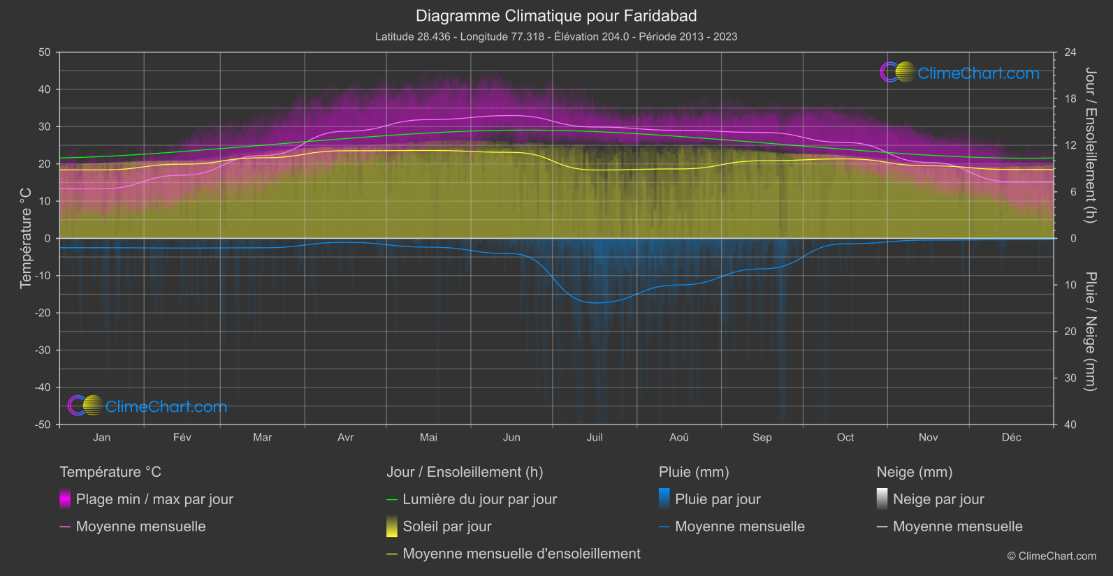 Diagramme Climatique Complet de Faridabad, Inde: Moyennes Mensuelles et Tendances Météorologiques