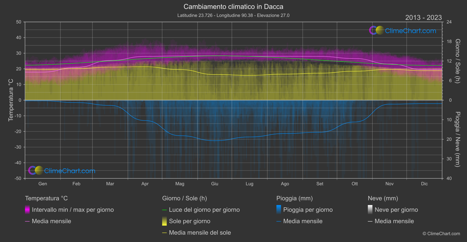 Grafico del Cambiamento Climatico di Dacca, Bangladesh
