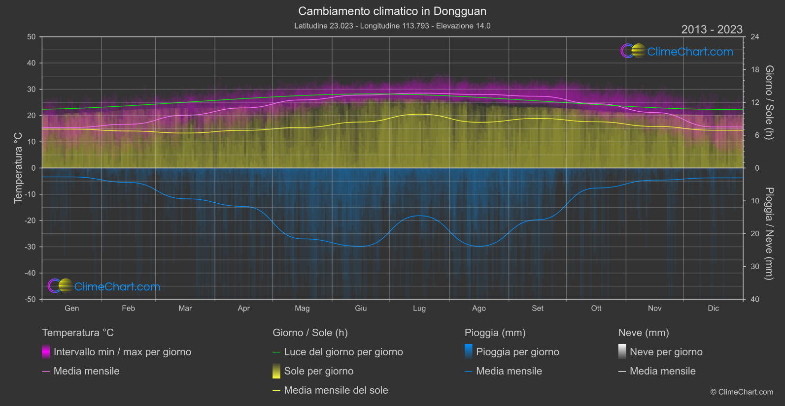 Grafico del Cambiamento Climatico di Dongguan, Cina