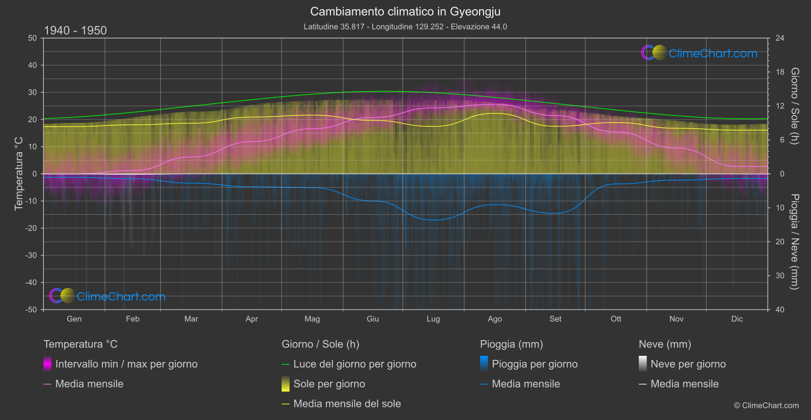 Grafico del Cambiamento Climatico di Gyeongju, Corea del Sud