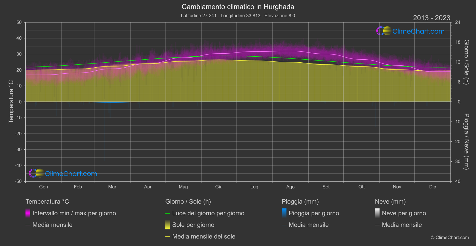 Grafico del Cambiamento Climatico di Hurghada, Egitto