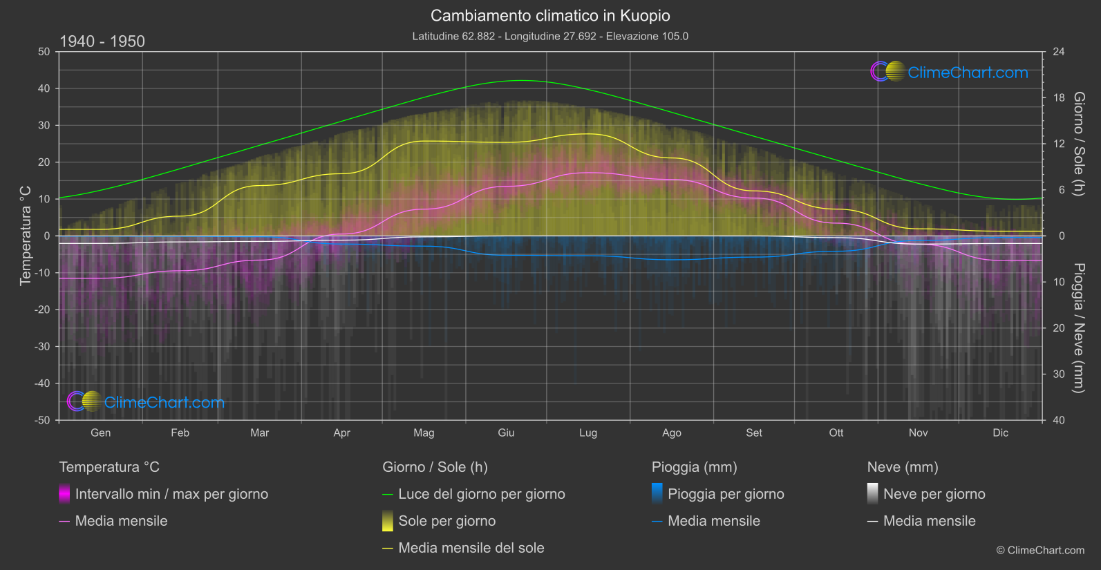 Grafico del Cambiamento Climatico di Kuopio, Finlandia