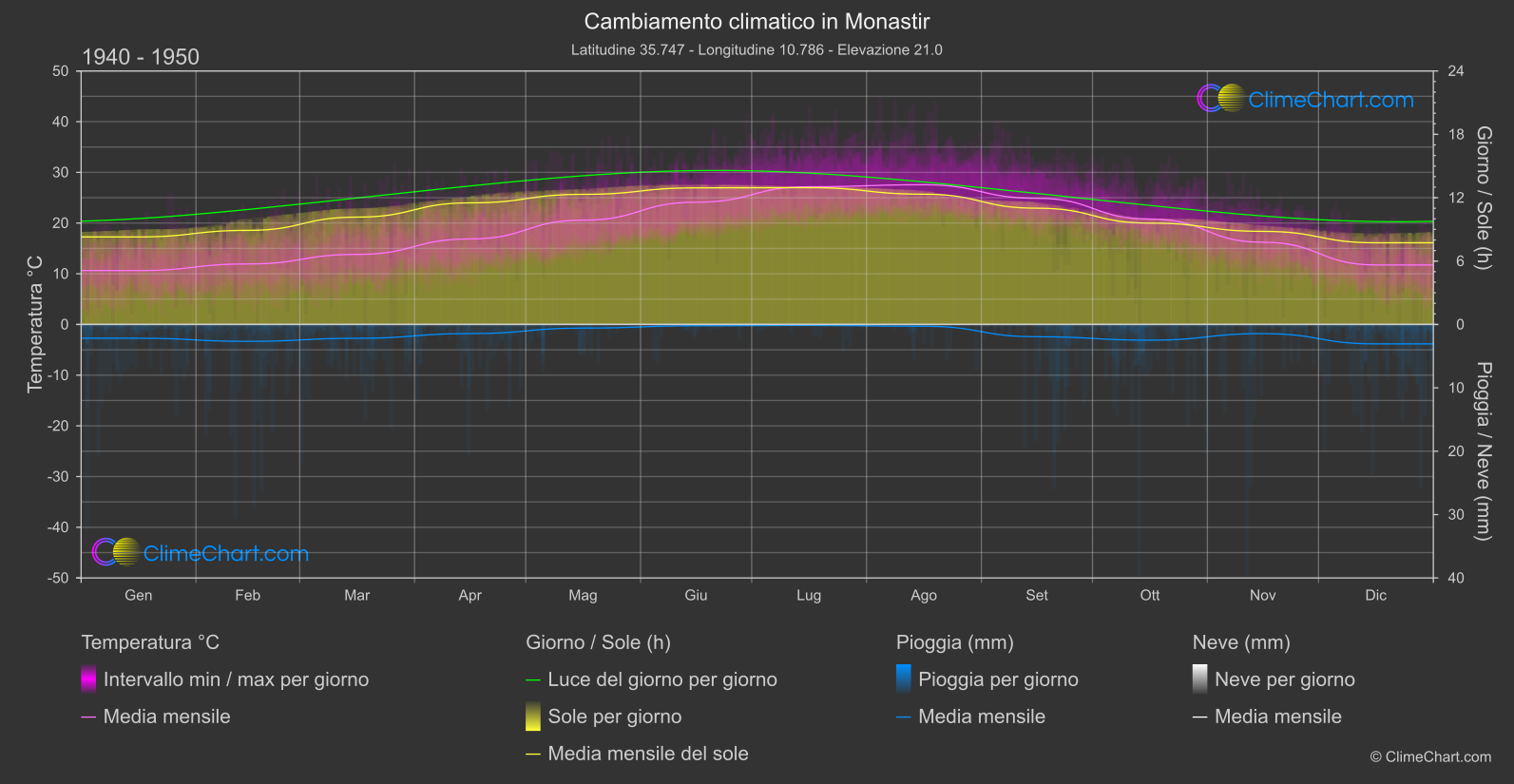 Grafico del Cambiamento Climatico di Monastir, Tunisia