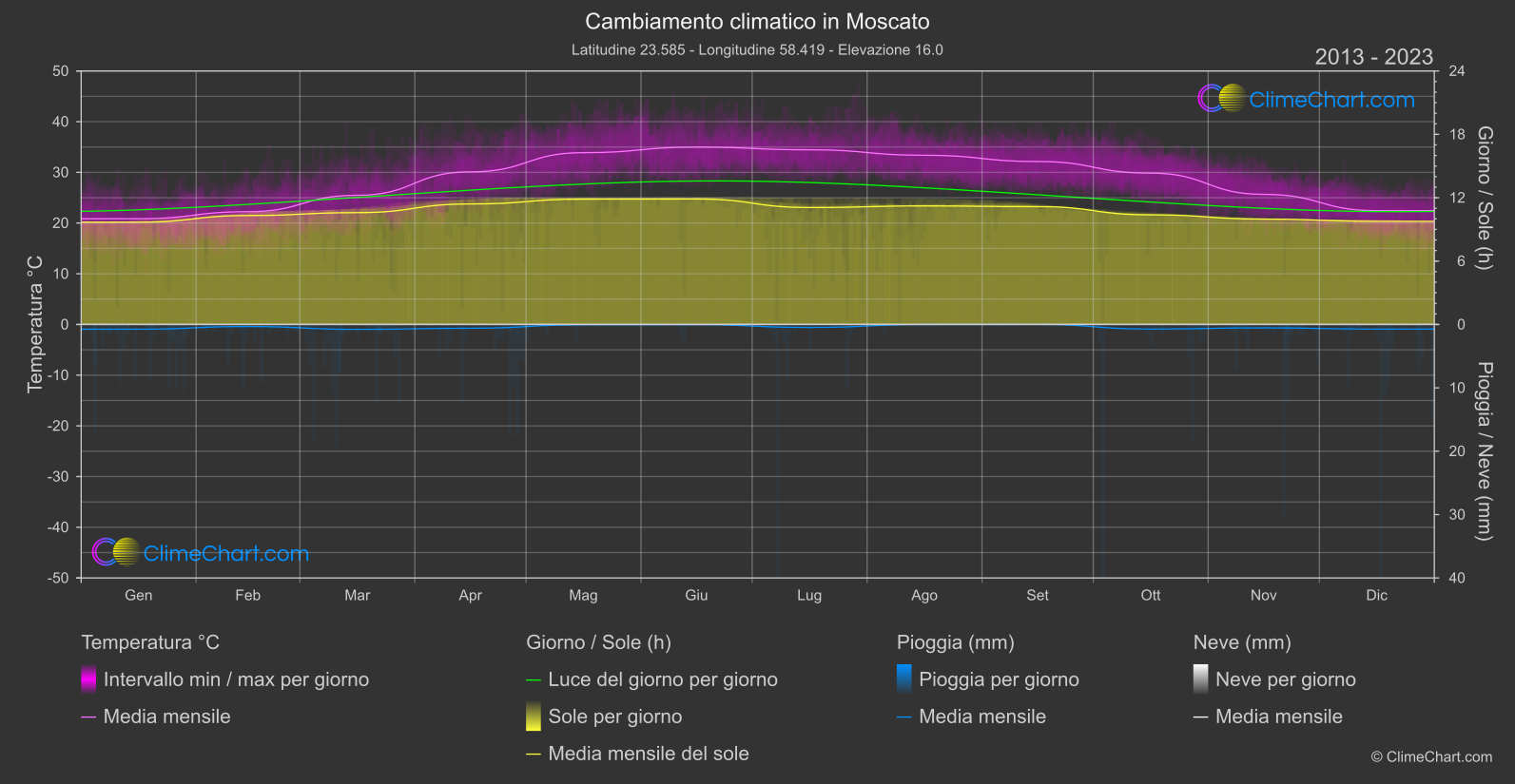Grafico del Cambiamento Climatico di Moscato, Oman
