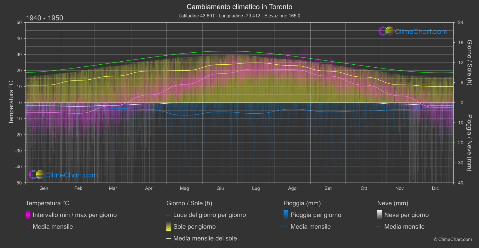 Grafico del Cambiamento Climatico di Toronto, Canada