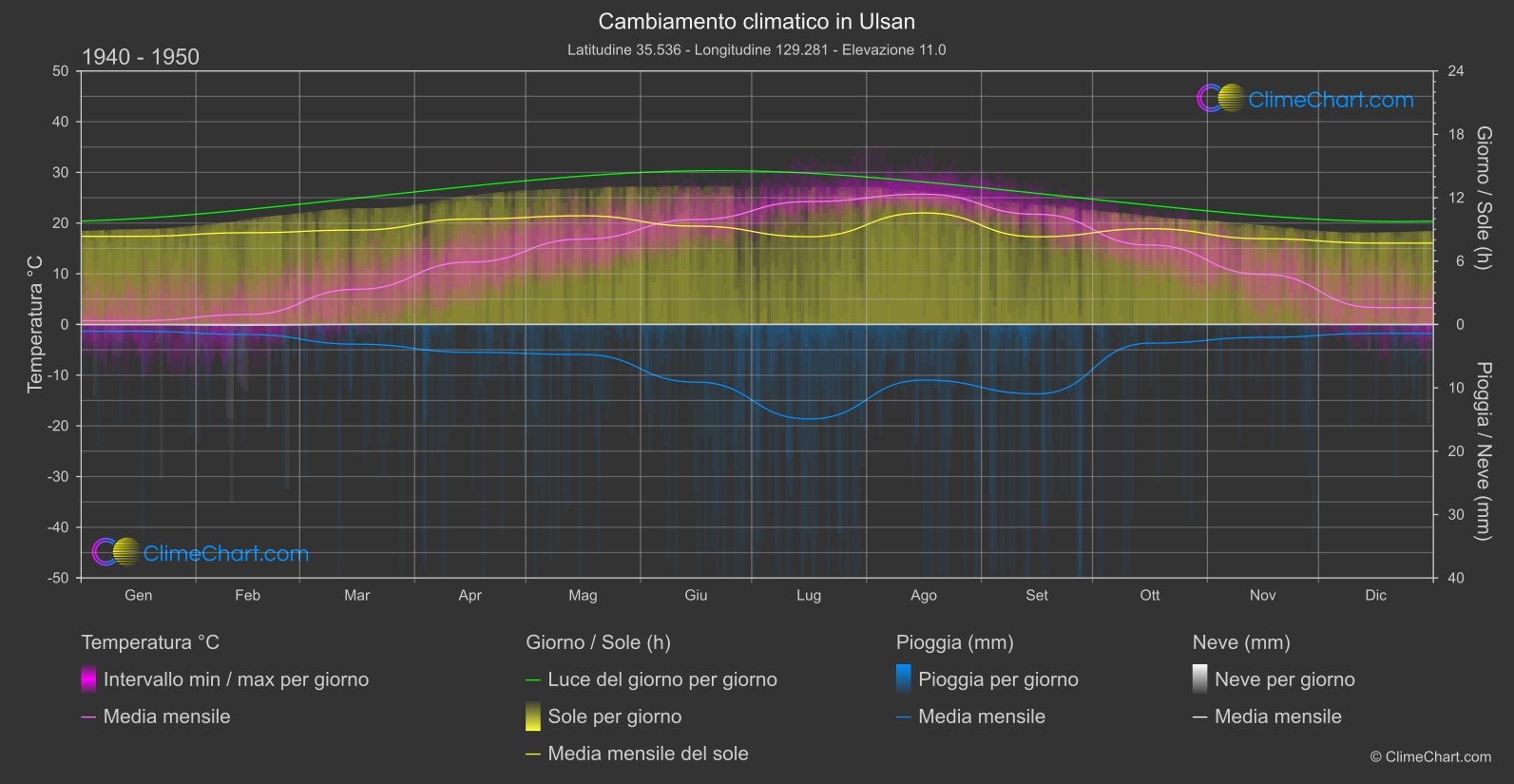 Grafico del Cambiamento Climatico di Ulsan, Corea del Sud