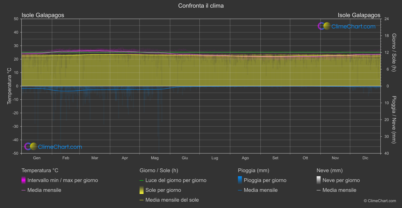 Grafico di Confronto Climatico di Isole Galapagos, Ecuador vs città del Messico, Messico